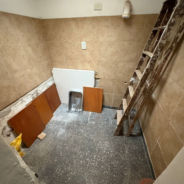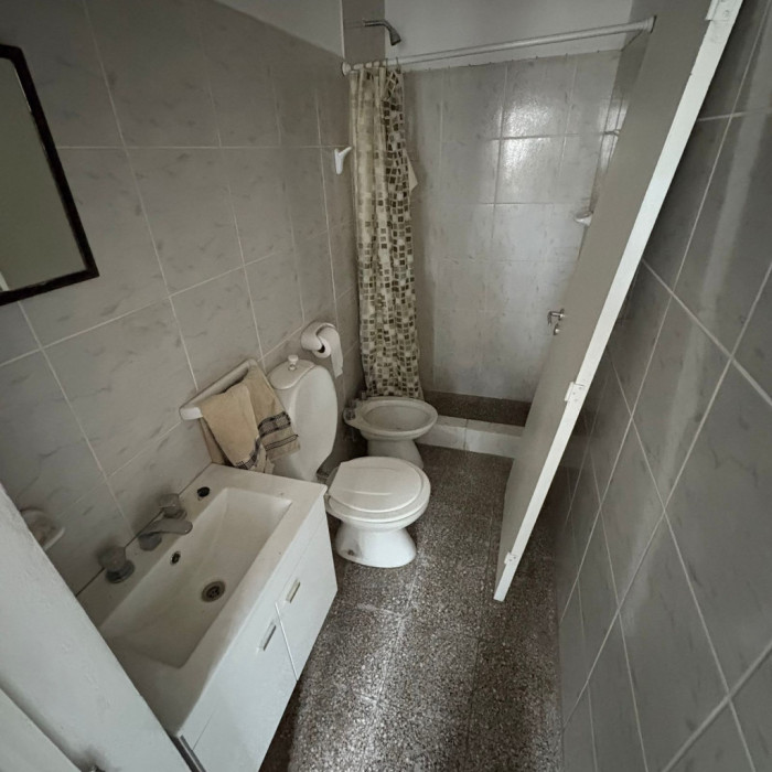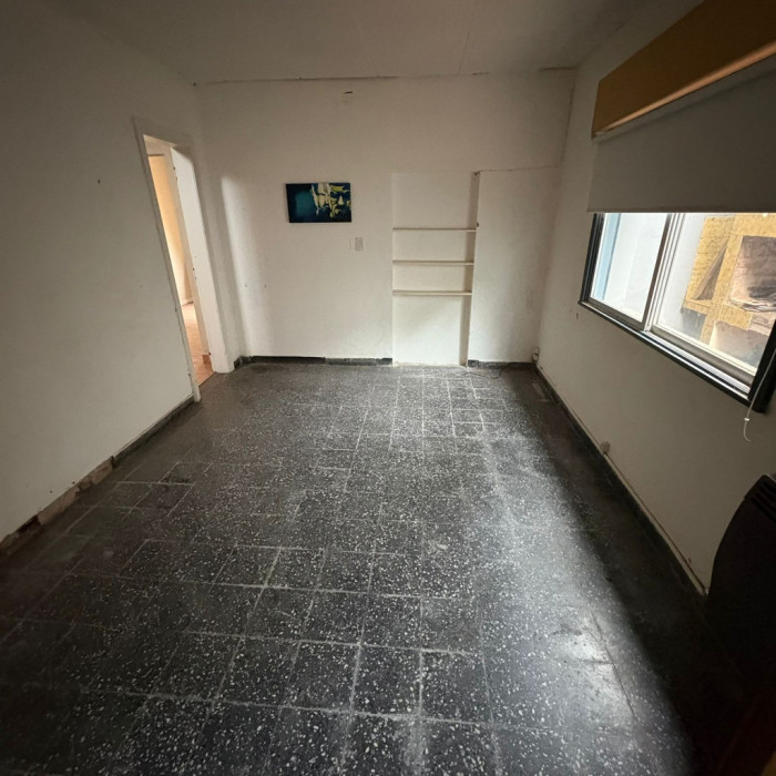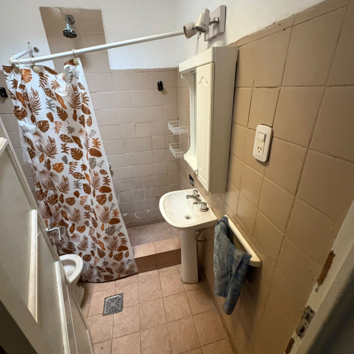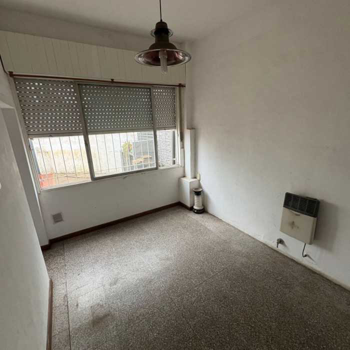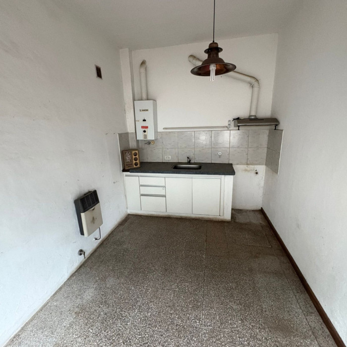 Un departamento con patio; cochera descubierta, 1 dormitorio, baño y cocina comedor en excelente estado.